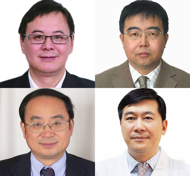 The four professors are Professor Dai Qionghai from the Department of Automation, Professor Zhou Ji from the School of Materials Science and Engineering, Professor Zhang Jianmin from the School of Civil Engineering, and Professor Dong Jiahong from the Beijing Tsinghua Changgung Hospital.