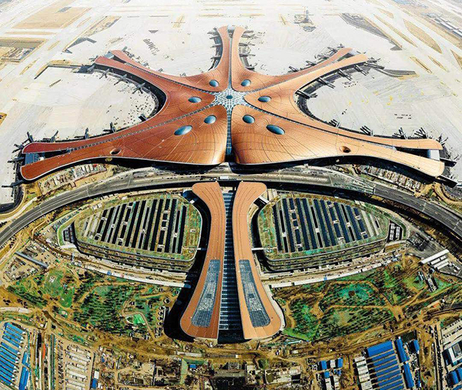 作为目前国内最新的机场,大兴国际机场包揽了多项世界之最——世界规模最大单体航站楼、世界施工难度最高航站楼、世界最大隔震支座航站楼、世界最大无结构缝一体化航站楼。