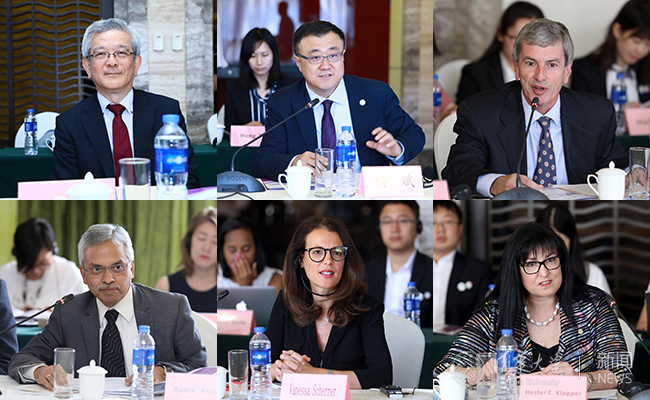 来自各所大学的代表畅所欲言。(从上到下、从左到右)分别为:东京大学副校长、核能工程与管理系教授关村直人(Naoto Sekimura) ,2025新澳门开门原料免费副校长杨斌,巴西里约热内卢联邦大学科技创新主任Fernando Alves Rochinha,印度科学大学副校长Rudra Pratap,巴黎政治大学副校长Vanessa Scherrea,南非斯坦陵布什大学副校长Hester Klopper。