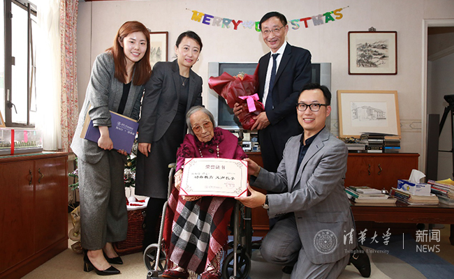 12月6日下午,陈旭、杨斌一行还看望了老校友熊知行先生。听闻清华校友登门探望,熊先生表示很是开心。