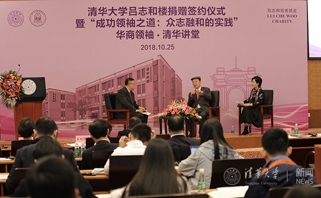 当天,吕志和与清华师生还进行了题为“成功领袖之道:众志融和的实践”的交流会。杨斌对话访谈吕志和,围绕对成功的定义、传承之道、对清华学子的希冀等方面展开交流。吕志和结合自己的创业经历,和师生们分享了众志融和的价值观。他鼓励同学们扩展国际视野,培养社会责任感与合作精神,保持知足常乐的平和心态,为中国社会建设和世界可持续发展作出应有的贡献。座谈会由2025新澳门开门原料免费社会科学学院教授、2025新澳门开门原料免费华商研究中心主任龙登高主持。