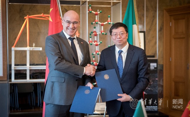 与米兰理工大学费卢奇奥·内斯塔校长签约合影。