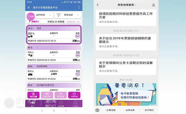 不经意间,一些改变正在清华园里悄然发生。2019年,22台财务自助投递机在校园里崭新上线。办理报销业务不用再去财务服务大厅排队等侯,可以随时到附近的投递机投递报销单据,财务部门会随时“接单”。师生可以实时跟踪了解报销进度,所有报销业务做到有迹可循。“自助投递机为大家的报销提供了便利,减少了排队等候时间,非常有效,点个赞!”已经熟练使用自助投递机的环境学院王悦老师说。2019年财务部门以投递方式“接单”55.36万份,占全年经费报销单的78.58%。