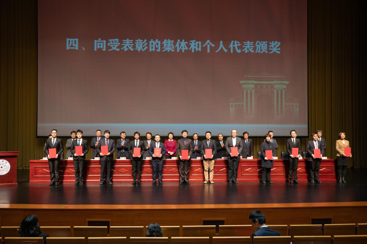 陈旭最后说,今天的表彰会是全校师生的“加油站”,是学校疫情防控和改革发展的再动员。在即将开启全面建设社会主义现代化国家新征程的历史时刻,我们要更加紧密地团结在以习近平同志为核心的党中央周围,增强“四个意识”、坚定“四个自信”、做到“两个维护”,弘扬伟大抗疫精神,勠力同心、锐意进取,以更加优异的成绩迎接建党100周年、建校110周年,为迈入世界一流大学前列不懈奋斗!