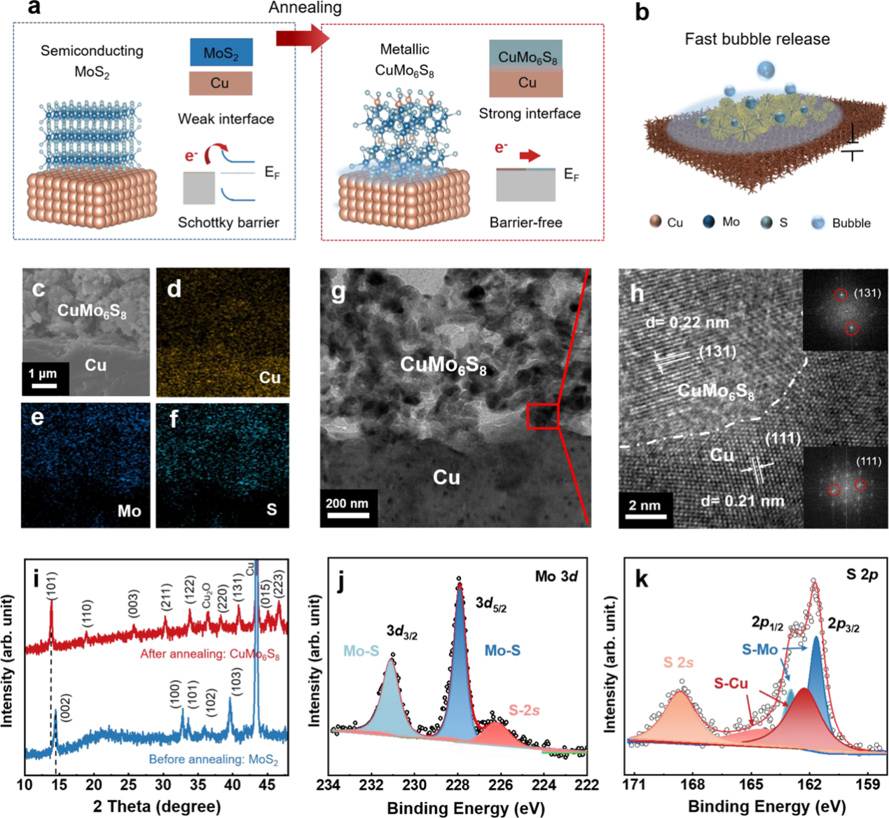 图1.Cu-CuMo6S8电极制备及结构表征