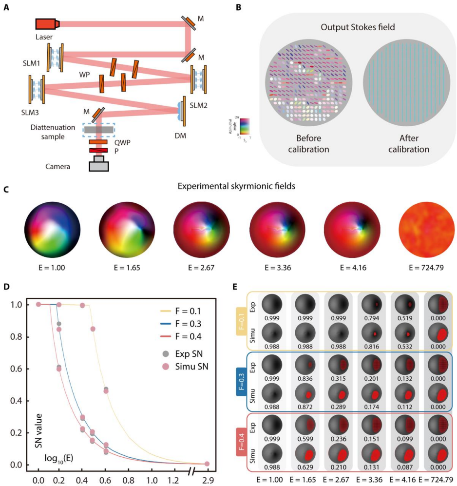 研究成果以“利用光学斯格明子评估复杂像差下矢量自适应光学系统性能的新方法”(Using optical skyrmions to assess vectorial adaptive optics capabilities in the presence of complex aberrations)为题,于10月3日发表于《科学进展》(Science Advances)。