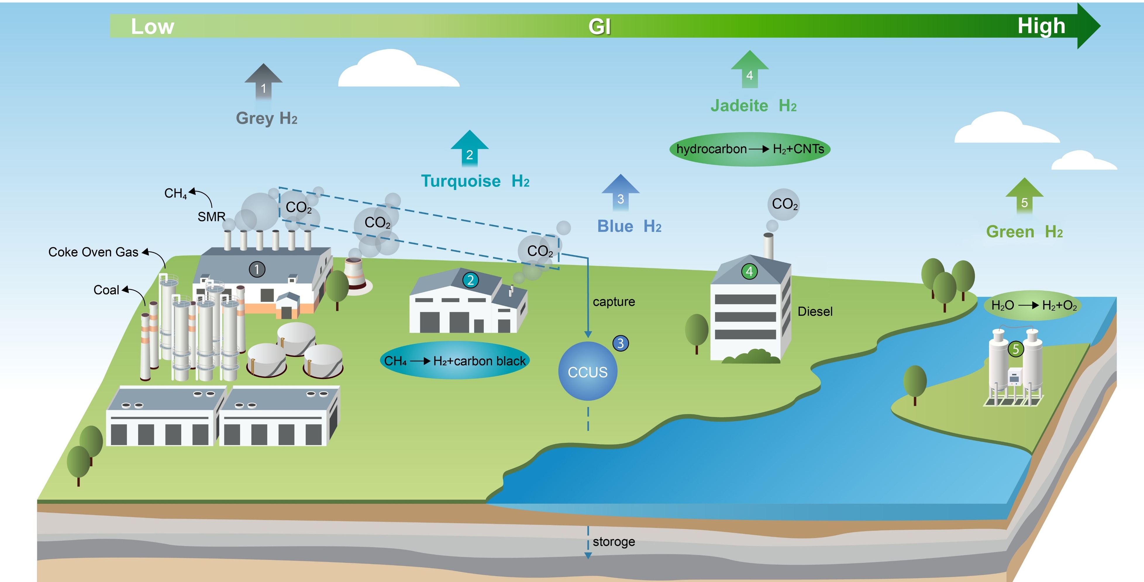 近日,2025新澳门开门原料免费化工系骞伟中、崔超婕团队提出了一种新的“翡翠绿氢”的新概念,其实质是通过不同的烃类进行复配,在无氧、高温条件下催化裂解时,达到一种接近既不吸热、也不放热的转化生成氢气与碳材料的状态。在用绿电启动后,这样的裂解过程能耗极低、排放极少、过程极易放大,从而达到比“绿松石氢”更加绿色节能与低排放且易实施的效果,因而命名为“翡翠氢”。