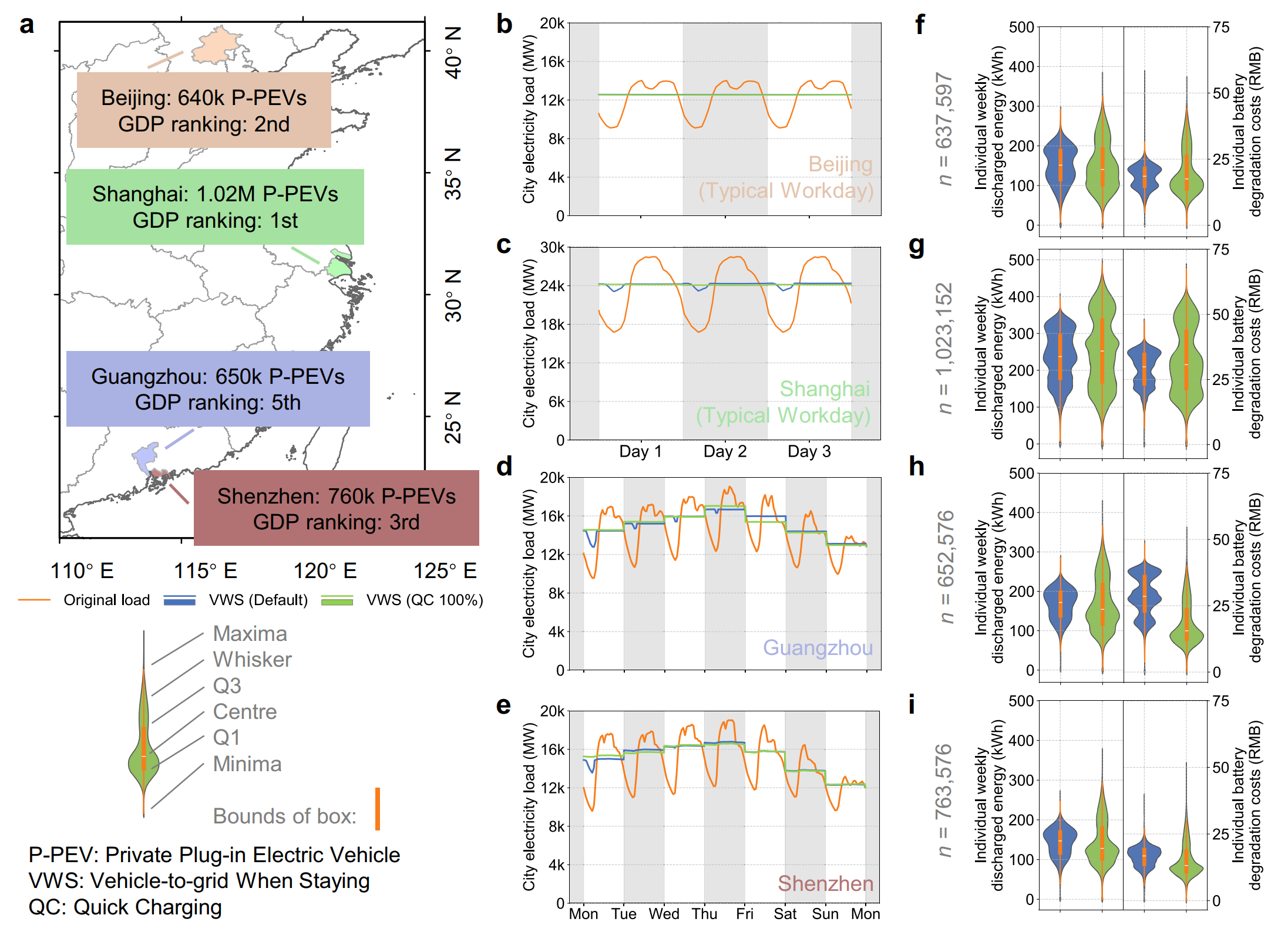 研究成果以“全面考虑真实行为因素的中国超大城市车网互动潜力评估”(Unlocking vehicle-to-grid potential of load shifting in China’s megacities considering comprehensive real-world behaviors )为题,于11月18日发表于《自然·通讯》(Nature Communications)。