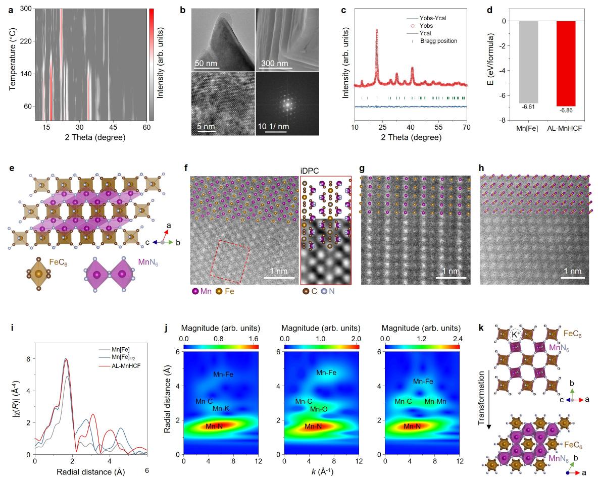 图2.具有层状结构的普鲁士蓝材料的结构表征