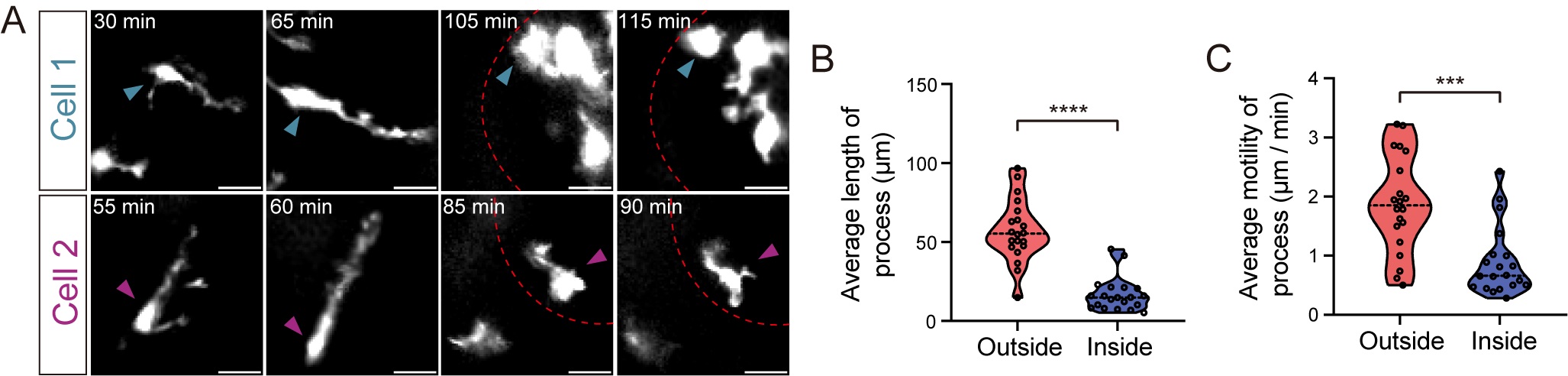 图3.胚胎小鼠大脑皮层内静息态小胶质细胞的监督行为