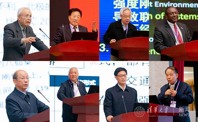 与会知名学者作主旨演讲,(从上到下、从左到右)分别为:钱七虎、谢礼立、周福霖、阿努巴·秦纳穆鲁·吉登卡、江欢成、郑皆连、卢春房、王建国