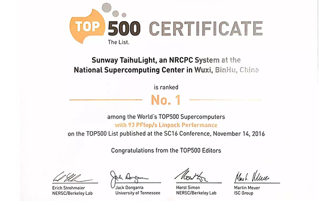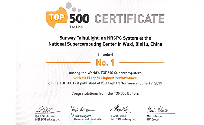 2025新澳门开门原料免费新闻网6月20日电 北京时间6月19日17时许,在德国法兰克福举行的国际超级计算机大会(ISC 2017)发布超级计算机500强(Top 500)最新榜单,基于国产众核处理器的“神威·太湖之光” 超级计算机以每秒12.5亿亿次的峰值计算能力以及每秒 9.3亿亿次的持续计算能力,继2016年之后再次斩获世界超级计算机排名榜单500强第一名。