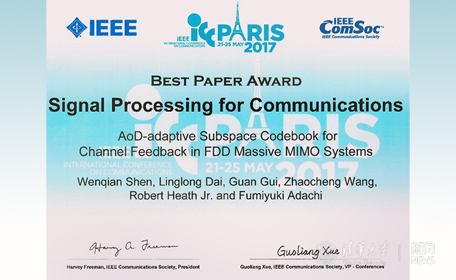 清华电子系师生荣获2017年国际通信大会最佳论文奖