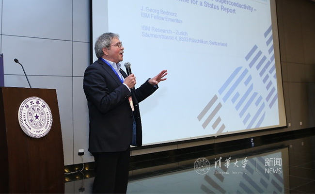 贝德诺尔茨教授介绍高温超导发现三十年来的研究进展。