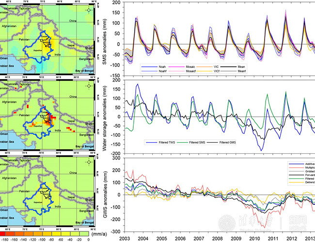 据悉,发源于我国青藏高原的印度河和恒河上游冰雪储量变化对下游印度北部平原的可获得水量、用水方式及农业生产有重要影响;印度北部平原是全球地下水亏损最为严重的地区。准确评估该区域地下水亏损量及其变化情势,是全球遥感水文学关注的热点和难点问题之一,同时对青藏高原冰川质量亏损的精确评估也有重要意义。2009年美国宇航局Rodell等在《自然》杂志上的论文首次采用重力卫星GRACE评估了印度北部平原地下水的亏损,公布其速率为18±4.4 km3/年。该文一经发表即受到科学界及政府相关部门的广泛关注和争议。