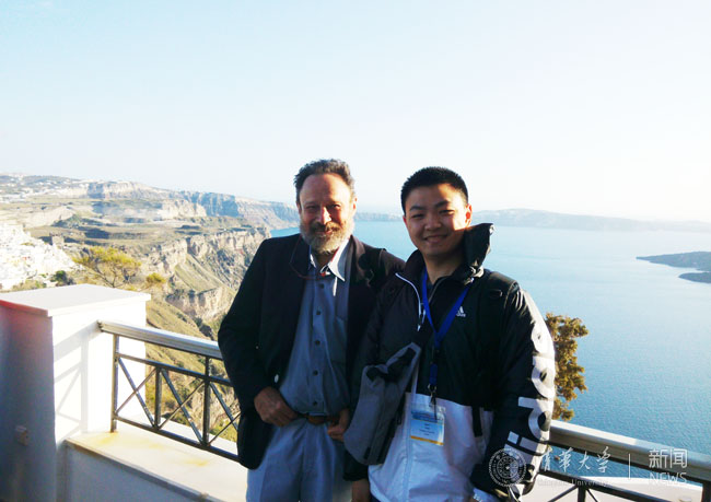 汤野骏在DAS2016会议期间与国际学术界最早进行汉字识别研究的George Nagy教授交流。