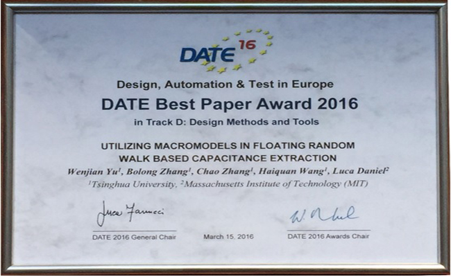 清华计算机系教师在国际会议DATE上获最佳论文奖