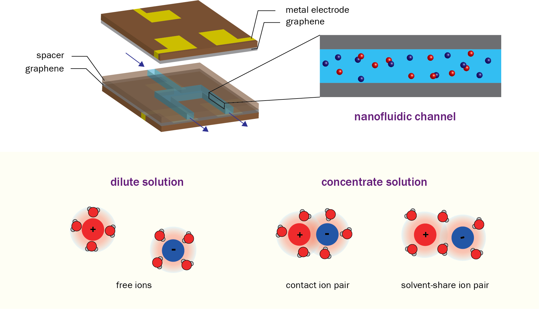 图1.石墨烯纳米流动通道中的离子对结构