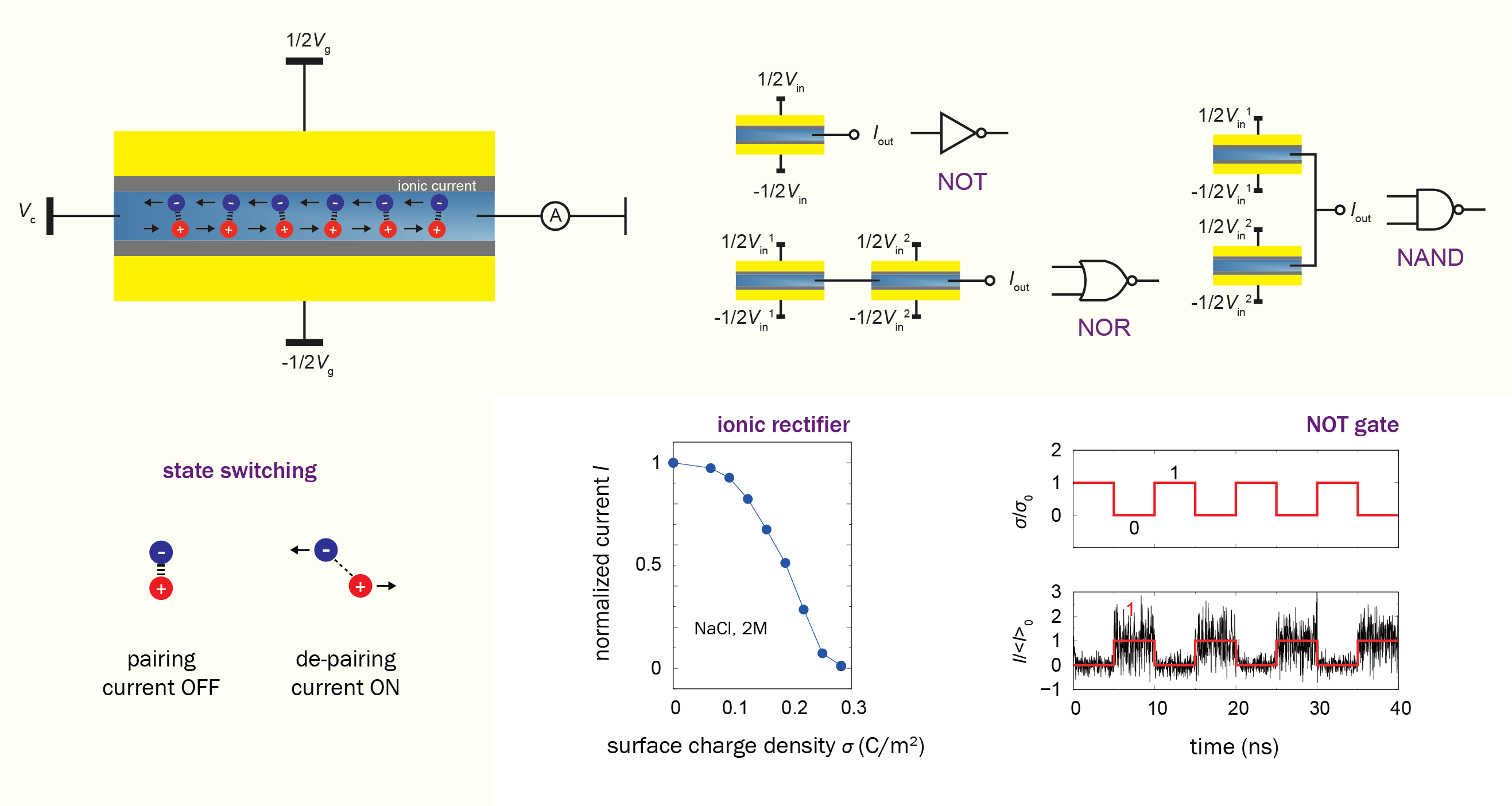 图2.基于离子对状态切换的的开关、整流元件与逻辑计算单元