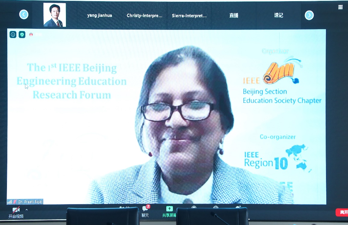 普里蒂·巴贾杰(PreetiBajaj)报告的主题是”工程教育的挑战”,她讲述了工程教育从1.0到4.0的发展历程,提出在当前的教育4.0阶段,人工智能、机器人、虚拟现实、翻转课堂等技术在教育中的应用。