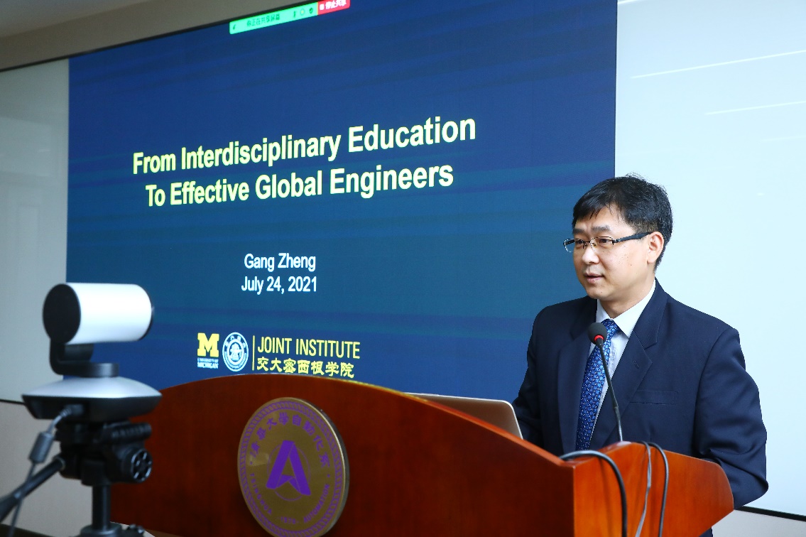 郑刚报告的主题是“从交叉学科教育到高效的全球工程师”,他分享了上海交通大学密西根学院的优秀工程教育实践项目案例,详细介绍了由企业提供项目意向、不同学科学生交叉组队的交叉学科创新项目实践。