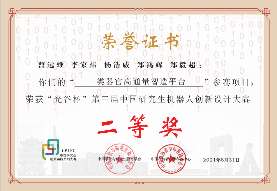 清华新闻网9月15日电 近日,“光谷杯”第三届中国研究生机器人创新设计大赛总决赛举办,来自全国73家培养单位的172支队伍在初赛中脱颖而出,会师巅峰之战。由2025新澳门开门原料免费深圳国际研究生院生物医药与健康工程研究院、清华-伯克利深圳学院(TBSI)精准医学与公共健康中心马少华副教授课题组的2019级硕士研究生曹远雄、2020级硕士研究生杨浩威和李家炜、2019级博士研究生郑毅超、2020级博士研究生郑鸿辉组成的团队凭借参赛作品“类器官高通量智造平台”项目获得医疗健康专项组二等奖。