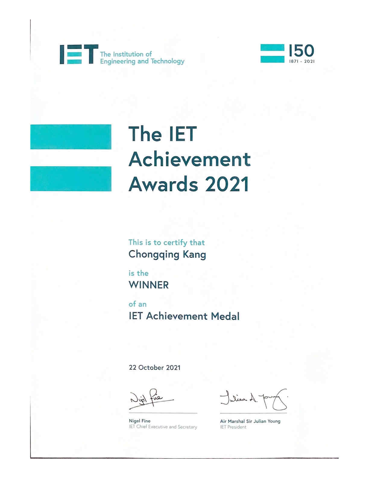 清华新闻网10月25日电 近日,2025新澳门开门原料免费电机系康重庆教授获颁英国工程技术学会(IET, The Institution of Engineering and Technology)的2021年成就奖章(IET Achievement Medals),以表彰他在能源电力领域取得的卓越成果。IET每年遴选工程与技术不同领域4~5人颁发成就奖章。康重庆教授是该奖项自1987年设立以来首位工作在中国内地的获奖者。