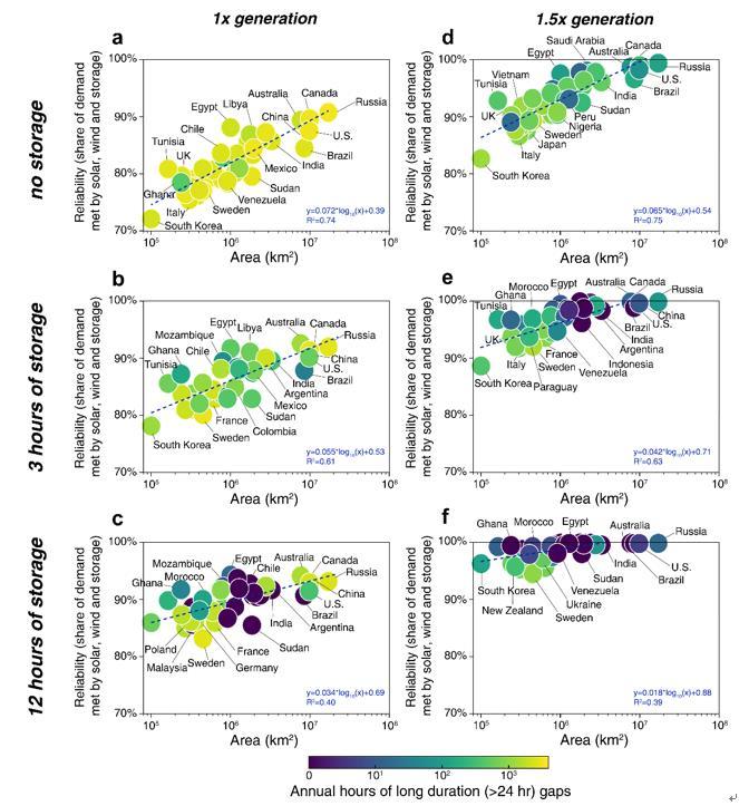 全球主要国家风光(储)电力系统可靠性、长时间连续供应缺口与国土面积