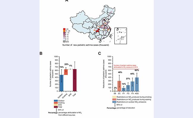 清华新闻网5月6日电 据全球疾病、伤害和风险因素研究(Global burden of Diseases, Injuries, and Risk factors Study),空气污染是造成全球疾病负担的五大首要风险因素之一。二氧化氮(NO2)是一种常见的空气污染物,与全球每年上百万的儿童新发哮喘病例有关。2021年9月22日,世界卫生组织(World Health Organization,WHO)发布了最新的空气质量指南,将NO2年平均浓度标准由旧标准40μg/m3紧缩到为10μg/m3,且该标准同时适用于室内和室外环境。室外NO2常被视作与交通有关的空气污染的标志物之一,而住宅内烹饪过程中燃气的燃烧、香烟的燃烧也会产生大量NO2。随着我国城市化进程的发展,室内外NO2污染所引发的健康问题越来越严峻,采取有效的政策限制室内和室外NO2的排放,对降低环境风险因素所带来的儿童哮喘疾病负担至关重要。