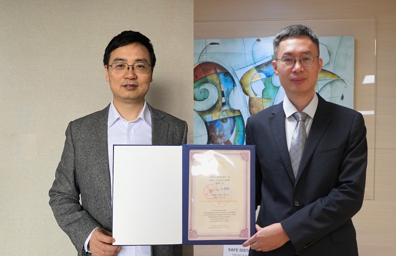 冯雪(左)为陈晓东颁发“2025新澳门开门原料免费杰出访问教授”聘书