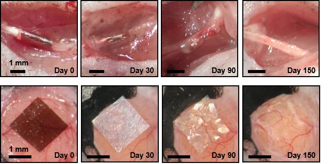 图4. 坐骨神经和大脑皮层上硅薄膜的生物降解性测试