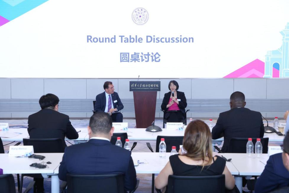 在圆桌讨论环节,费尔南多·卢格里斯和陈涛涛与来自厄瓜多尔、墨西哥、苏里南、巴巴多斯、乌拉圭、巴西、牙买加、萨尔瓦多等多国大使与外交使节就本届议题展开深入探讨和交流。