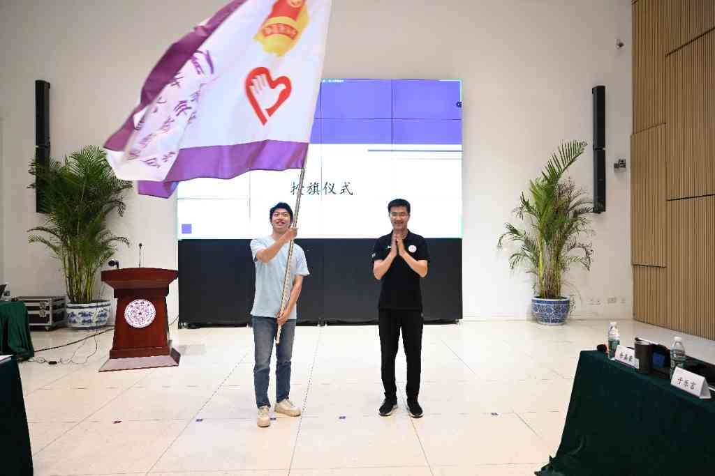 过勇向第二十六届研究生支教团志愿者代表授旗。