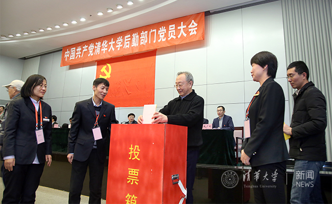 后勤党委书记、副总务长邱显清代表第十届后勤党委作题为《改革创新主动作为,努力构建具有清华特色的新型后勤服务保障体系》的工作报告,全面总结了第十届后勤党委四年多来的工作成效、认识体会和工作建议。大会通过无记名投票差额选举方式,选举产生了后勤党委出席学校第十四次党代会代表和后勤部门第十一届委员会。