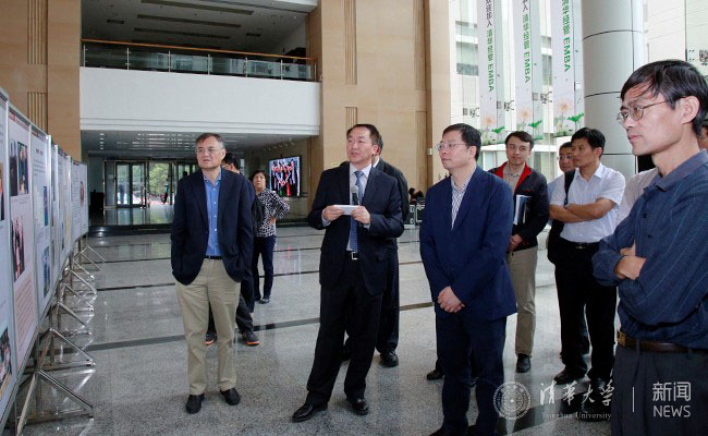 会议期间正值“一位清华退休老教授——优秀共产党员赵家和事迹展”在经管学院舜德楼一楼大厅展出,校长邱勇和与会人员在会前一同参观了展览。