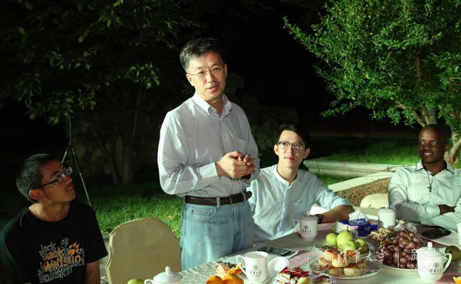 史宗恺很高兴与大家共度“清华式”中秋节。他说,随着社会生活的巨变,中秋已从饮食文化追求上升到文化层面。趁着微凉的晚风,同学们逐一自我介绍。在轻松和谐的氛围中,史老师与大家聊起刚进大学时在清华度过的第一个中秋节——全班同学齐聚颐和园,拿着砖头般的录音机,映照着圆月,放着月光曲。