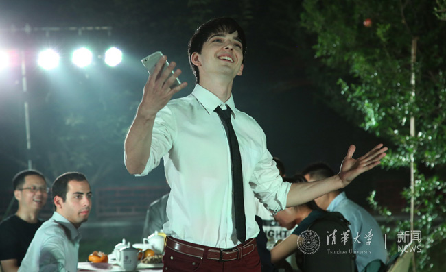 几位同学还即兴做了才艺展示。学生艺术团民乐队的段美汐带来了一支经过改良的高音笙,为大家献上了一首《彩虹》。来自俄罗斯的罗维卫是人文学院研一新生,在圆月映照之下,他抑扬顿挫地为大家朗诵了苏轼的《水调歌头》。校团委书记邴浩为大家带来一曲《在金色的沙滩上》,浑厚的男低音悦耳动听,将茶话会推到一个小高潮。