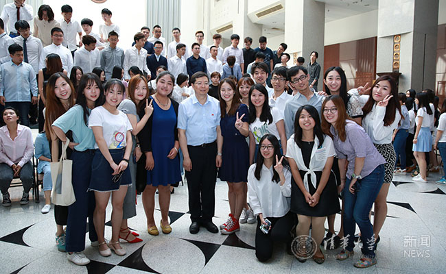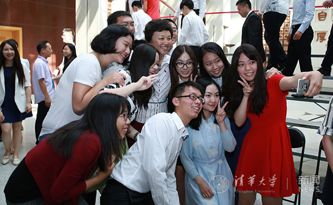 合影过程中,邱勇、陈旭仔细询问各位同学毕业手续办理情况,毕业后的去向和未来规划,鼓励大家牢记清华精神,在未来继续追寻自己的梦想。很多同学在集体合影后,再次围拢到校长、书记身边,纷纷拿出手机和校长、书记拍照留念。