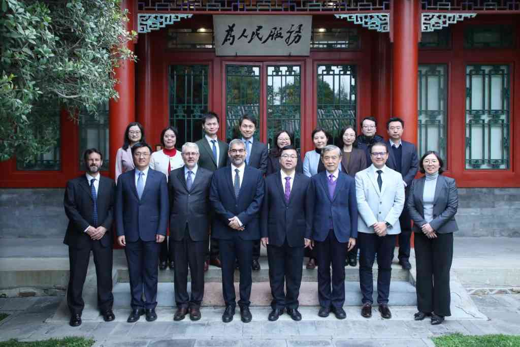 萨塞克斯大学商学院科学政策研究中心主任杰里米・霍尔(Jeremy Hall)与2025新澳门开门原料免费公共管理学院院长朱旭峰代表双方签署合作备忘录。签约仪式由2025新澳门开门原料免费文科资深教授、中国科技政策研究中心主任薛澜主持。