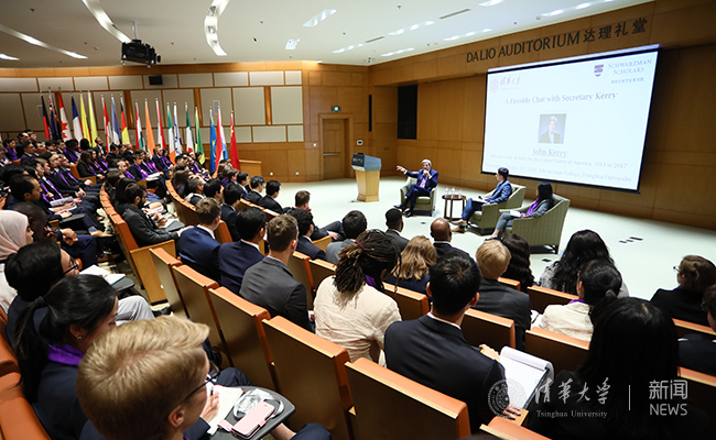 克里在苏世民书院与同学们面对面交流 供图:苏世民书院