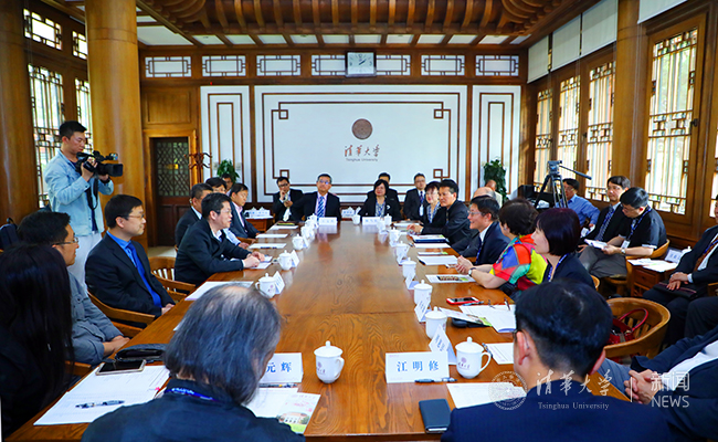 清华新闻网5月8日电(记者 徐 静)5月7日下午,台湾政治大学校长周行一来访清华。校党委书记陈旭在座谈后与来宾简单交流并合影留念,校党委副书记邓卫在工字厅与来宾会谈,就进一步加强合作进行深入交流。