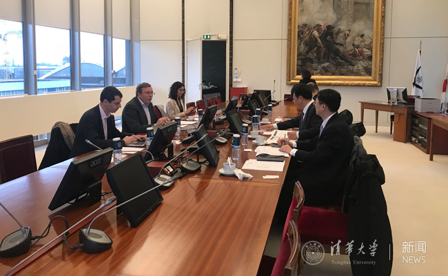 王希勤等与巴黎综合理工大学教务长弗兰克·帕卡德会谈。巴黎综合理工大学 供图