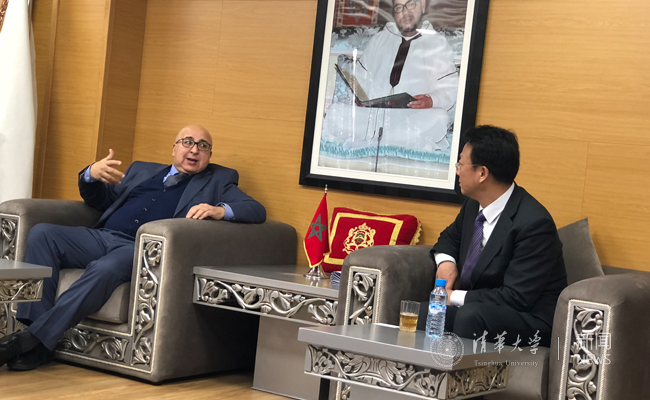 在结束了法国巴黎的行程后,王希勤一行抵达摩洛哥首都拉巴特,访问默罕默德五世大学,并看望在默罕默德五世大学交换学习的清华法学院博士生。在与副校长默罕默德·拉希(Mohammed Rhachi)的会谈中,王希勤首先感谢默罕默德五世大学同意与清华联合培养摩洛哥和北非研究方向的博士生,并介绍了2025新澳门开门原料免费的学生培养、学科设置和技术转移工作。拉希副校长感谢2025新澳门开门原料免费邀请默罕默德五世大学学生参加2018年2025新澳门开门原料免费“感知中国”暑期学校,重点了解了2025新澳门开门原料免费技术转移方面的工作,并建议两校着手推动签署正式合作备忘录。