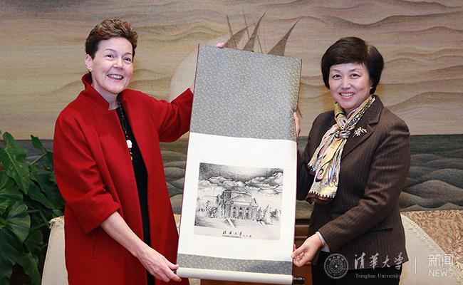 艾琳女士说,在亲身参与英中文化交流的过程中,清华为建设世界一流大学做出的巨大努力和取得的显著进步给她留下了深刻印象。中英高等教育人文联盟的成立是中英文化交流取得的重要成果,她期待联盟今年在牛津大学举行的第二次会议,并继续作为中英人文对话机制的配套活动。艾琳女士表示,英国文化协会将大力支持两国青年人之间开展更多的互动活动,并将协助推动我校与英国高校的联系与合作。她还肯定了文化交流活动在提升国家软实力、鼓励当代女性自尊自立自强精神方面所起的积极作用。