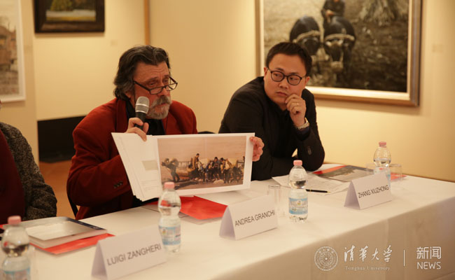 路易吉·臧克里向大家介绍了“抽象与现实”画展。他致辞表示,作为艺术研究院院长,首先感谢到场嘉宾,更要感谢王宏剑大师亲自到场参加画展开幕式。这次展览由意大利艺术研究院联合意大利华人艺术家协会共同举办,是今年研究院最后一个展览,也是最重要的一个展览。他认为王宏剑的艺术可以理解为人文现实主义,他用油画连接社会价值,与中国传统紧密连接,这些画作不仅是对现实的解读,而且也是对事物本质的诠释。这些画作给我们带来的惊喜不仅是卓越绘画技术的展示,更向大家表达了艺术深刻的思想性。