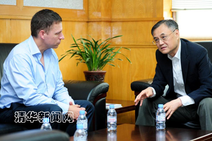 经管学院院长钱颖一对彼得·蒂尔来到清华经管学院表示欢迎。钱院长向他介绍了学院的情况,并与他就中国经济发展形势、创新创业环境以及经济管理教育等方面的问题进行了深入交流和讨论。