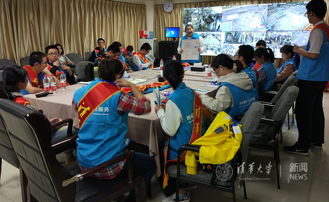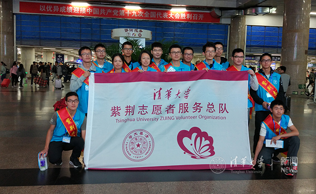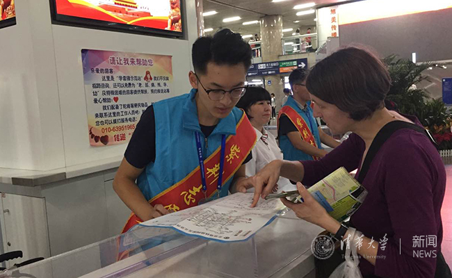 清华的志愿者们主要负责的区域是地下二层的地铁出入口附近以,分布在人流较为密集的过道、楼梯旁以及咨询台里。他们身着统一的志愿者服装,佩戴象征清华志愿者标志的绶带,各个面带微笑,言行举止落落大方,贴心地为来去匆忙的旅客们服务,在客流高峰段甚至顾不上喝上一口水。在半天的服务结束之后,多数志愿者口干舌燥却心满意足,即使大家的午餐只有简单的一桶方便面,大家也是吃得津津有味。一些只报名参加半天的志愿者们甚至请求下午能够继续参加志愿活动。