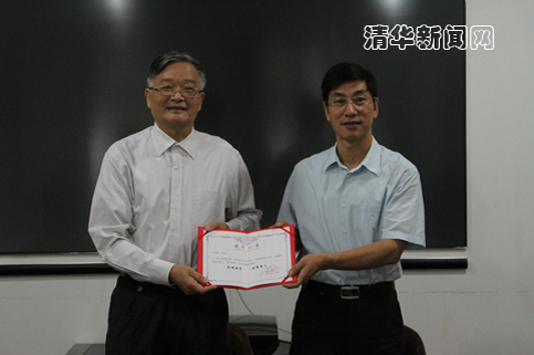 唐杰向毛宗强学长(左)送上捐赠证书。李昂 摄