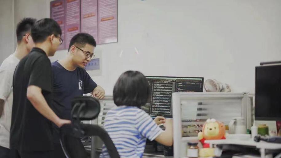 深言科技团队岂凡超(左三)等讨论中文大模型架构