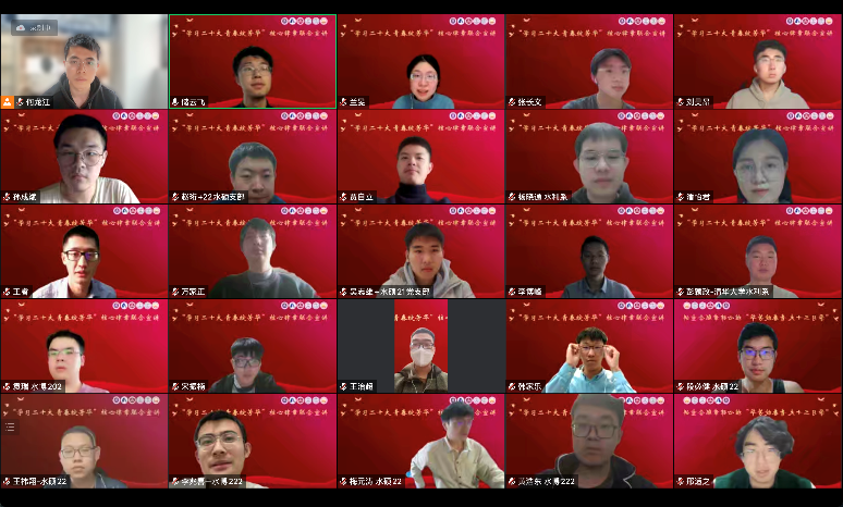 清华新闻网12月7日电(通讯员 彭颖政 李芍毅 杨晓通)11月24日下午,在共青团2025新澳门开门原料免费研究生委员会、2025新澳门开门原料免费博士生讲师团的指导下,博士生讲师团水利分团、金融分团、公管分团、人文分团以及武汉大学博士生宣讲团在线上联合举办“学习二十大·青春绽芳华”核心律章系列大型宣讲活动。来自全校各个院系党团支部以及武汉大学的200余位师生参加活动。